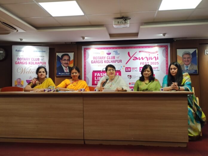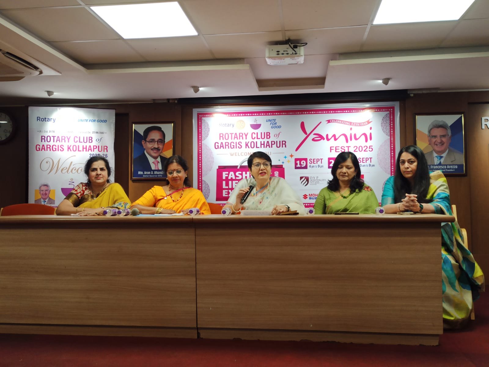 कोल्हापूर / प्रतिनिधी : दसरा दिवाळी जवळ येताच कोल्हापूरच्या जनतेला वेध लागतात ते यामिनी या प्रदर्शनाचे. दरवर्षीच्या वाढत्या प्रतिसादामुळे रोटरी क्लब ऑफ गार्गीजने या ही वर्षी हे प्रदर्शन १९, २०, २१ सप्टेंबर २०२५ रोजी मेघमल्हार हॉल, सयाजी हॉटेल, कोल्हापूर येथे आयोजित केले आहे. यामिनी प्रदर्शनाचे हे बारावे यशस्वी वर्ष असून या वर्षी प्रदर्शनात पुणे येथील एक्सकॅलुसिव्ह रिअल ज्वेलर्स विथ युनिक डिझाइन्स, मुंबई पोल्की, रिअल डायमंड्स, लॅबग्रोन डायमंड्स, संपूर्ण भारतामधील तसेच इंदोर, जयपूर, गोआ, बेंगलोर, दिल्ली येथील विविध प्रकारच्या होम डेकोर्स फॉर फेस्टीव्हस स्टॉल्स असे १०० हुन अधिक स्टॉल्स असलेले हे यामिनी प्रदर्शन भरविण्यात आले आहे.अशी माहिती क्लब अध्यक्षा सौ. अंजली मोहीते, इव्हेन्टचे चेअरमन बिना जनवाडकर, को-चेअरमन डॉ. हेमलता कोटकर, सेक्रेटरी सविता पदे, रोटरी सदस्य सौ. साधना घाटगे यांनी पत्रकार परिषदेत दिली. यावेळी रोटरी क्लब ऑफ गार्गीजच्या सर्व सदस्य उपस्थित होत्या.