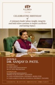डी. वाय. पाटील समूह दिवसेंदिवस प्रत्येक क्षेत्रात आपले अधिपत्य गाजवत आहे. जगाच्या पाठीवर कोल्हापूर जिल्हा ‘अतिथी आदरतिथ्य’ या बाबतीत नेहमीच पुढे असतो.. ‘अतिथो देवो भवं!’ या उक्तीला प्रमाण मानून पंचतारांकित ‘हॉटेल सयाजी’ची स्थापना करण्यात आली. इथं देखील जास्तीत जास्त तरुणांच्या हाताला रोजगार मिळावा हाच ध्यास होता. जगाच्या सबंध भागातून येणाऱ्या अतिथी वर्गाला उत्तम सेवा देण्यात सयाजी कधीही मागे हटले नाही. हे सर्व घडत असताना ‘ऋणानुबंध’ हा निकष अग्रभागी होता. एका बाजूला प्रगतीची नवनवीन शिखरे सर करत असताना समाजाप्रती असणारे ऋण अदा करण्यासाठी डी. वाय . पाटील प्रतिष्टानची (ट्रस्ट) स्थापना केली. लहान मुले ,तरुण, वृध्द या सर्वच वयोगटातील लोकांना कैक मार्गाने आधार देण्याचं काम प्रतिष्टान करत असते. कोल्हापूर जिल्ह्यातील मुलांना मेडिकलचे शिक्षण घेण्यासाठी पुणे, मुंबई किंवा बेळगाव अशा ठिकाणी जावं लागायचं. समाजातील ही उणीव भरून काढण्यासाठी सन १९८९ साली कसबा बावडा, कोल्हापूर येथे ‘डी. वाय. पाटील मेडिकल कॉलेजची स्थापना केली. डॉक्टर आणि संशोधक होण्याचे स्वप्न पाहणाऱ्या तरुणांसाठी ही संस्था निमित्त झाली. गेल्या तीन दशकात हजारों डॉक्टर्स या कॉलेजने घडवले. देशात आणि परदेशात संस्थेचे प्रतिनिधित्व करत आहेत. सन २००३ साली कोल्हापूर येथील कदमवाडी येथे ‘स्वार्थ आणि परमार्थ’ या दोन तत्वावर ८१० बेडचे सुसज्ज आणि अत्याधुनिक हॉस्पिटल उभारले. मा. कुलपती यांचे योग्य व्यवस्थापन, अचूक मार्गदर्शन आणि भक्कम आधार यामुळे डी. वाय. पाटील हॉस्पिटल पश्चिम महाराष्ट्रातील अग्रेसर मानलं जातं. लाखो लोकांच्या जीवनात नव संजीवनी देण्याचं काम या हॉस्पिटलने करत आलेलं आहे. मेडिकल कॉलेज, कसबा बावडा सुरुवातीच्या काळात खूप तोटा सहन करावा लागला. या पडत्या काळात माझ्या लोकांनी मला आधार दिला म्हणूनच मी आज यशस्वीपणे उभा आहे. त्या सर्व व्यक्तींचे मानावे तितके आभार कमीच आहेत. आज देशाच्या विविध राज्यात आणि परदेशात आपले विद्यार्थी आहेत याचा आम्हाला सार्थ अभिमान आहे. ज्यावेळेस आपल्या महाविद्यालायातून शिकून गेलेला विद्यार्थी खूप मोठं यश संपादन करतो त्याचवेळी काम करण्यास आणखी हुरूप येतो. आयुष्यात मोठं होण्यासाठी संयमी असणं किती गरजेची आहे याचं जीवंत उदाहरण म्हणून डॉ. पाटील यांच्याकडे पाहता येईल. विदेशी गाड्यांचा ताफा सोबत शेकडो ड्रायव्हर असताना देखील स्वतः गाडी चालवताना बहुतांश वेळा दिसत असतात. जगाच्या इतिहासात ज्या ज्या व्यक्ती यशस्वी झालेल्या आहेत. त्यांची कार्ये आणि वर्तन आपल्याला अचंबित करत असतात. एखाद्या कर्मचारी सोबत जिव्हाळ्याचे सबंध कसे असावेत याची कल्पना येते. यासाठी कष्ट आहेच